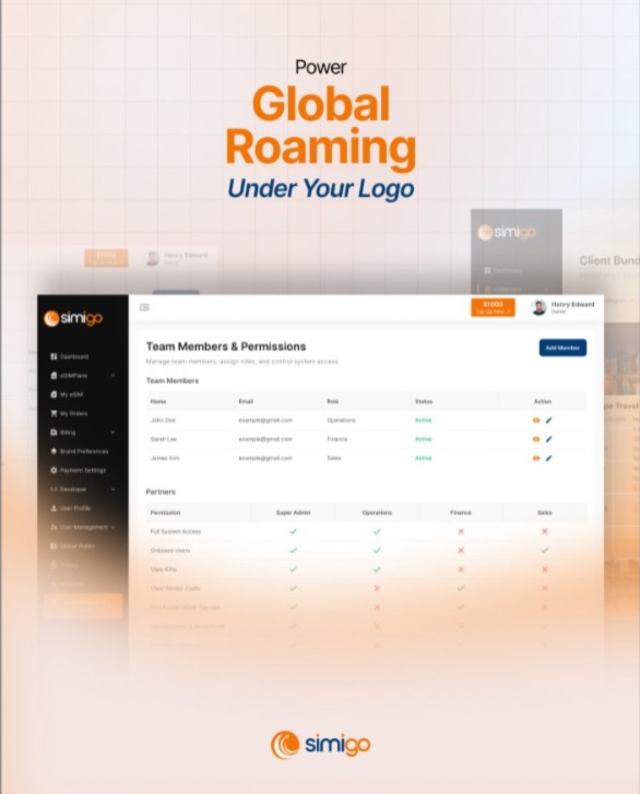 Launch your eSIM or AI offering in 190+ countries. Use built-in automation: WhatsApp / Website chatbots, social integrations, and usage analytics.